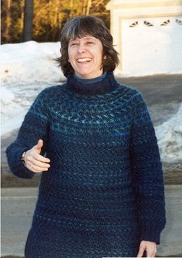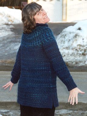 This sweater's variegated sections are spin from Pam's painted roving, Pacifica, from Dyeing for Fiber. Beautiful Romney!